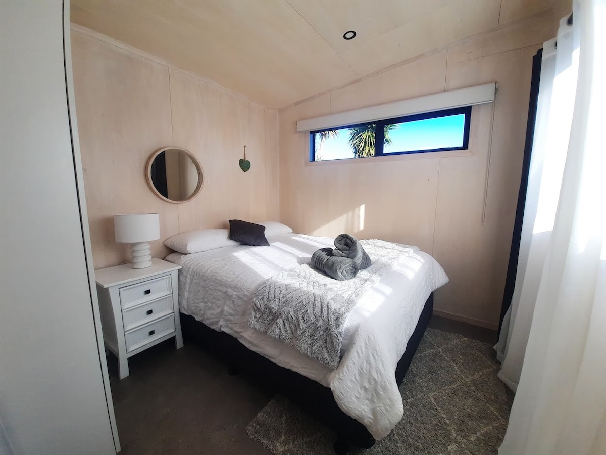 Situated within our homely block in Bulls with rural views and all day sun is a converted shipping container with separate access that we would love to host you in! We provide a SUPER comfy queen bed, ensuite, air con, private deck, wifi, Smart TV with streaming services and a kitchenette with microwave, jug, toaster, sandwich press and minifridge. A simple delicious breakfast and hot drink supplies also await. The perfect place for a stopover on your road trip, or to set up as a central base!