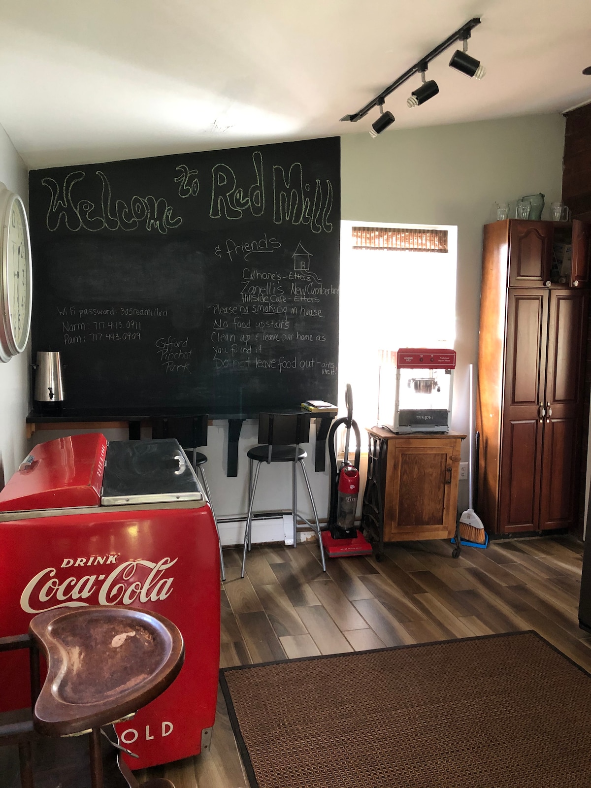 The Red Mill House is located at Exit 33(Yocumtown) off Interstate 83, easy access to Pennsylvania Turnpike and I-81. It is convenient to Walmart, pizza shops, fast food restaurants and small shopping areas. We are centrally located between Hershey, Lancaster, Gettysburg and close to York & Harrisburg. There is a large level yard, fire pit & barbeque grill, great for families. This is an old house, very functional but old!.Many quaint details with modern conveniences. It is NOT a 5 star hotel