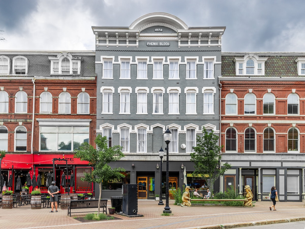 1873 historic hotel that sits in the heart of downtown Bangor. Just steps from fantastic restaurants, breweries, & coffee shops! 1/2 mi. to Amphitheater *10 minute walk* 43 mi. to Acadia Nat'l Park 3 mi. to Airport 3 min. walk to Zillman Art Museum KEY FEATURES: ☀ Plush Queen-sized bed w/ high end Centium Satin linens ☀ High Speed Fiber Internet ☀ 50” Roku TV w/ HULU + ☀ Work space ☀ Free Laundry in building ☀ Coffee Shop on ground floor ☀ Walking distance to Amphitheater, dining, & drinks!