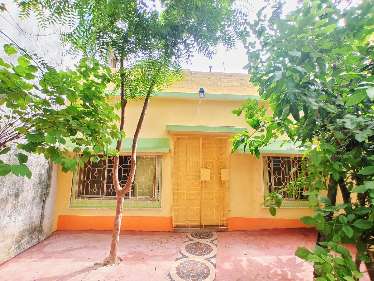Vasudhaiva Kutumbakam my Guest. Take it easy at my unique and tranquil home, situated just 10-15 minutes away from Kolkata Airport. Restful & cozy home, ideal for couples and working professional who are looking for peaceful stay with full privacy. It is also divyang and old person friendly as there are no stairs to the home. Laced with amenities, a separate housing unit of 350 sq ft livable area, located at the backyard of a two storey home, with full privacy to create memories and more.