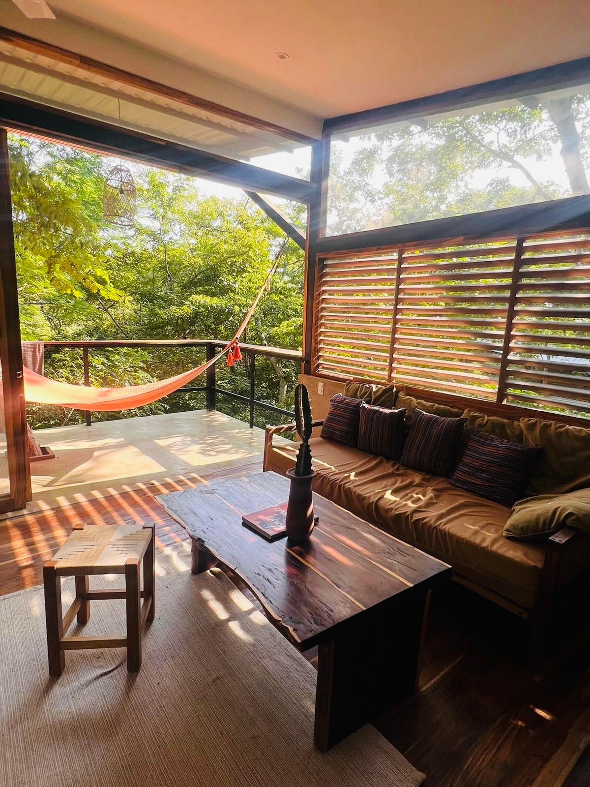 Suntem Nosotros Playa Maderas. Sanctuar relaxant de surfing în jungla tropicală din copaci. Casă în copac cu două etaje, în stil deschis, cu 1 dormitor, cu o bucătărie completă, baie cu vedere la junglă, spații de lucru și două verande în aer liber. Wi-Fi de mare viteză, mașină de spălat rufe, grădină și seră cu legume și ierburi, permacultură, 3 câini dulci, securitate cu normă întreagă, curățenie, hamac și personal prietenos. Vei auzi sunetele naturii afară: vântul, ploaia și vei întâlni însuflețirea naturii.