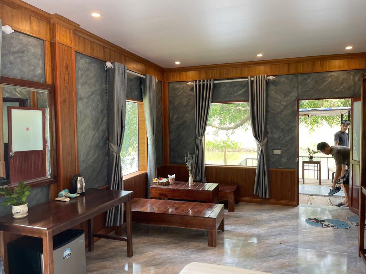 Evadează în fermecătorul nostru bungalou dublu de la Ninh Binh Family Homestay, conceput pentru confort și liniște. Acest refugiu confortabil oferă un amestec perfect de dotări moderne și farmec tradițional vietnamez, ceea ce îl face o escapadă ideală pentru cupluri . Bucură-te de ambianța liniștită a grădinilor noastre luxuriante și fă o baie răcoritoare în piscină. Experimentează ospitalitatea caldă din partea familiei noastre și explorează atracții din apropiere, cum ar fi Bai Dinh, Trang An, Hang Mua, Tam Coc, capitala antică Hoa Lu și parcul Cuc Phuong.