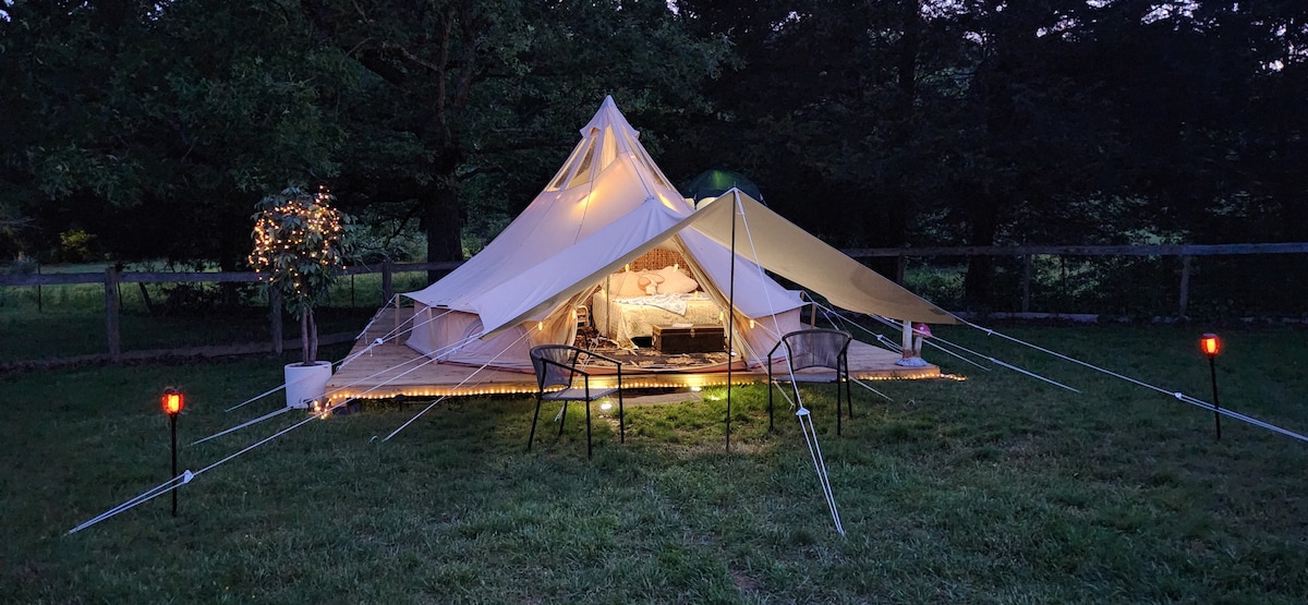 Cort glamping romantic (încălzit / cu aer condiționat)