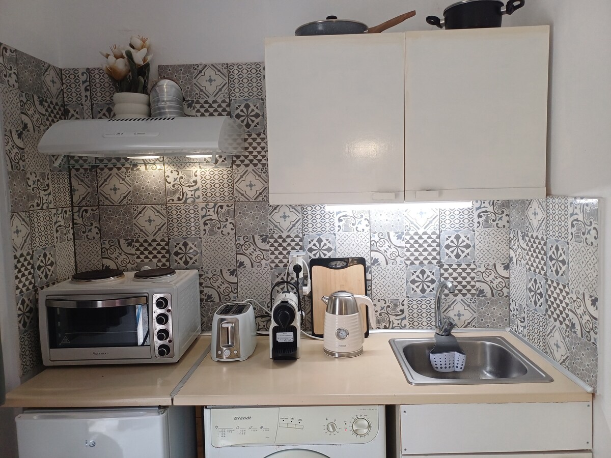 Studioul se află la 5 minute de mers cu mașina de plaja Gangou. Poți ajunge acolo pe jos la doar 15 minute trecând pe o cărare în natură! De asemenea, se află la 25 de minute de mers pe jos de centrul orașului, dar la numai 7 minute cu mașina. Bucură-te de priveliștile minunate și de liniștea naturii, fără a fi prea departe de divertisment, magazine și restaurante.