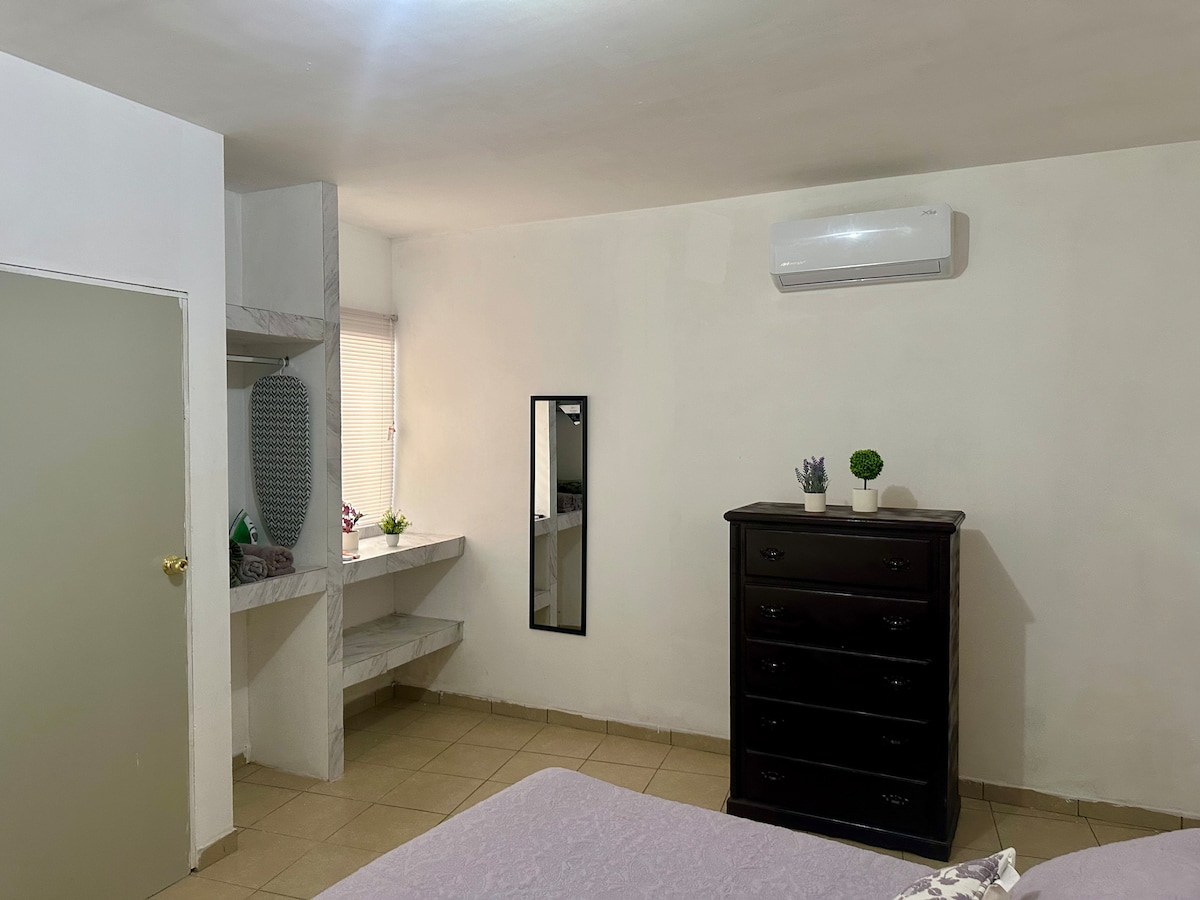 🔆 Departamento ideal para tramites de visa. Disfruta de este departamento , totalmente remodelado. Ubicación estratégica, cerca de un bulevar grande, tiendas de conveniencia en distancias caminables, parques industriales, consulado a 7 min, Cas a 14 min. 2 Camas queen, colchon memory form , ropa de cama de calidad.. Incluye toallas y productos basicos de higiene. Cajon de estacionamiento para un vehículo, patio trasero. Contamos con moises y silla de bebe, solicitarlo con tiempo.