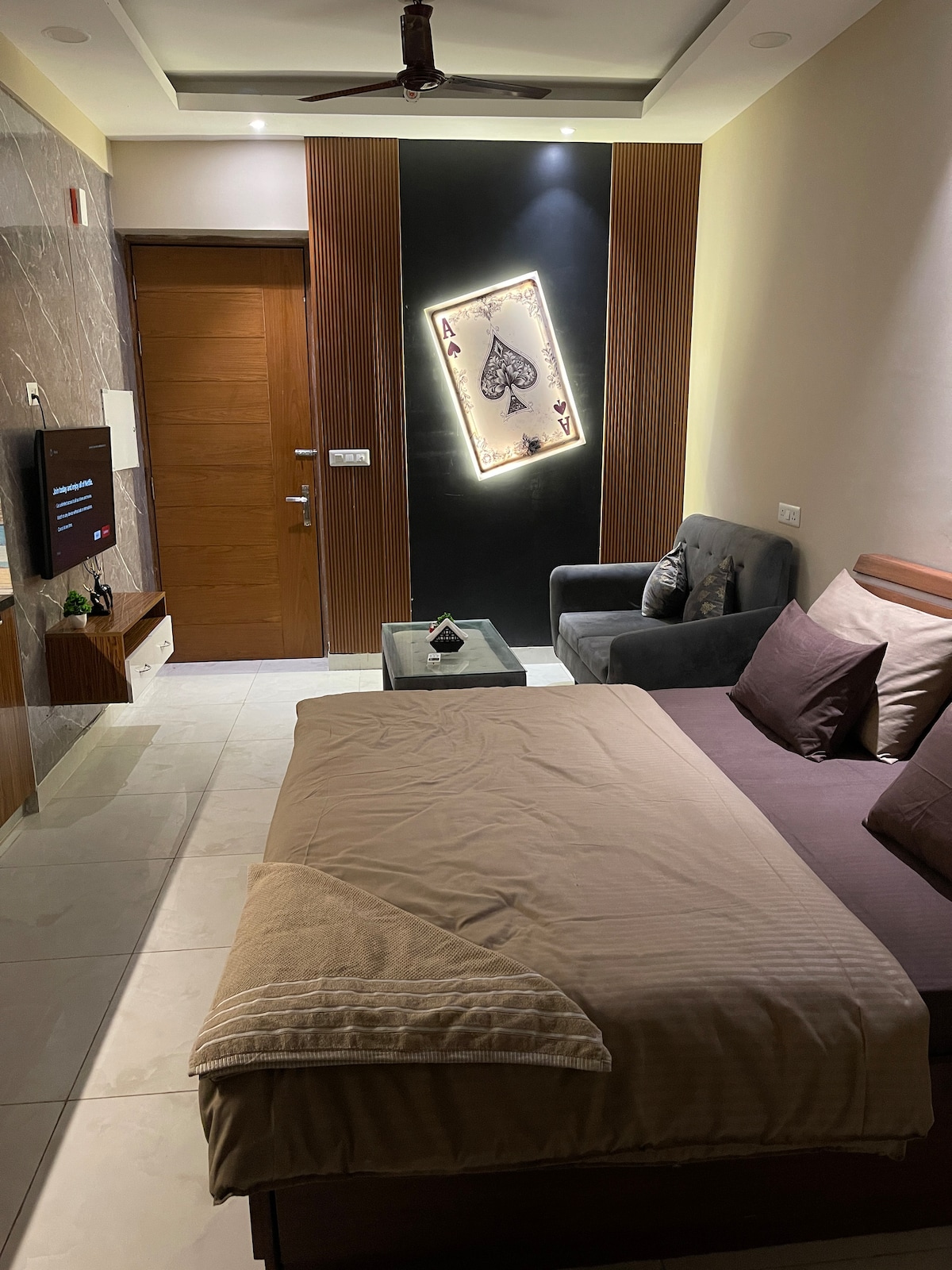 Apartament studio de lux complet mobilat, cu toate facilitățile moderne disponibile în Greater Noida, lângă stația de metrou. Studio luxos , special și prietenos pentru cupluri în Greater Noida Near Expo Mart. Ce îți va plăcea: Interior ✔ unic – bucură-te de interiorul fermecător. Confort ✔ modern: un spațiu frumos mobilat, cu un pat confortabil, scaune confortabile și decor elegant. ✔ Bucătărie complet echipată: gătește cu ușurință mesele preferate. WiFi ✔ rapid și Smart TV – Rămâi conectat și distrează-te.