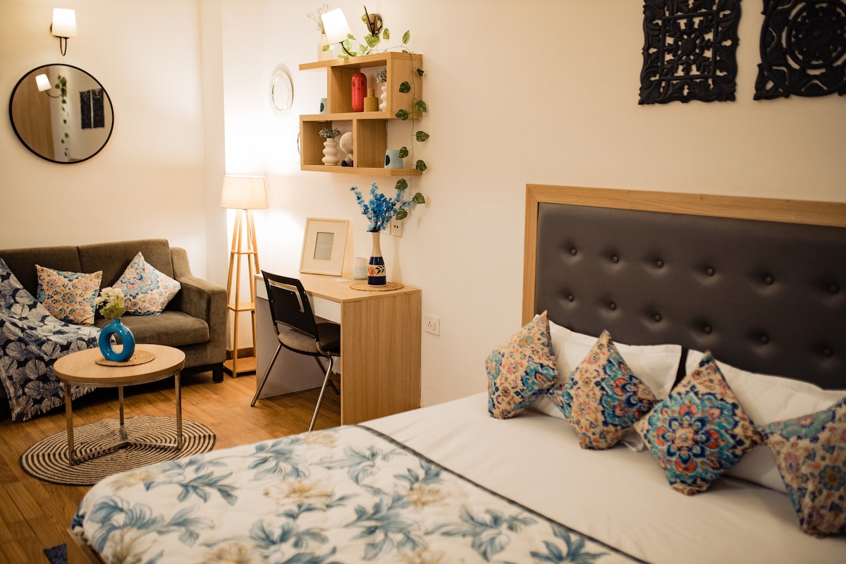 Bine ai venit la OMA by RvillaZ — studioul tău privat din Indirapuram. Bucură-te de un dormitor confortabil, o zonă de living elegantă, un tejghea pentru micul dejun, o chicinetă, o baie modernă și un spațiu de depozitare dedicat pentru bagaje. Perfect pentru muncă sau petrecere a timpului liber, acest studio independent oferă o ședere primitoare, dar premium, într-un cartier vibrant. Simte-te ca acasă la OMA by RvillaZ.