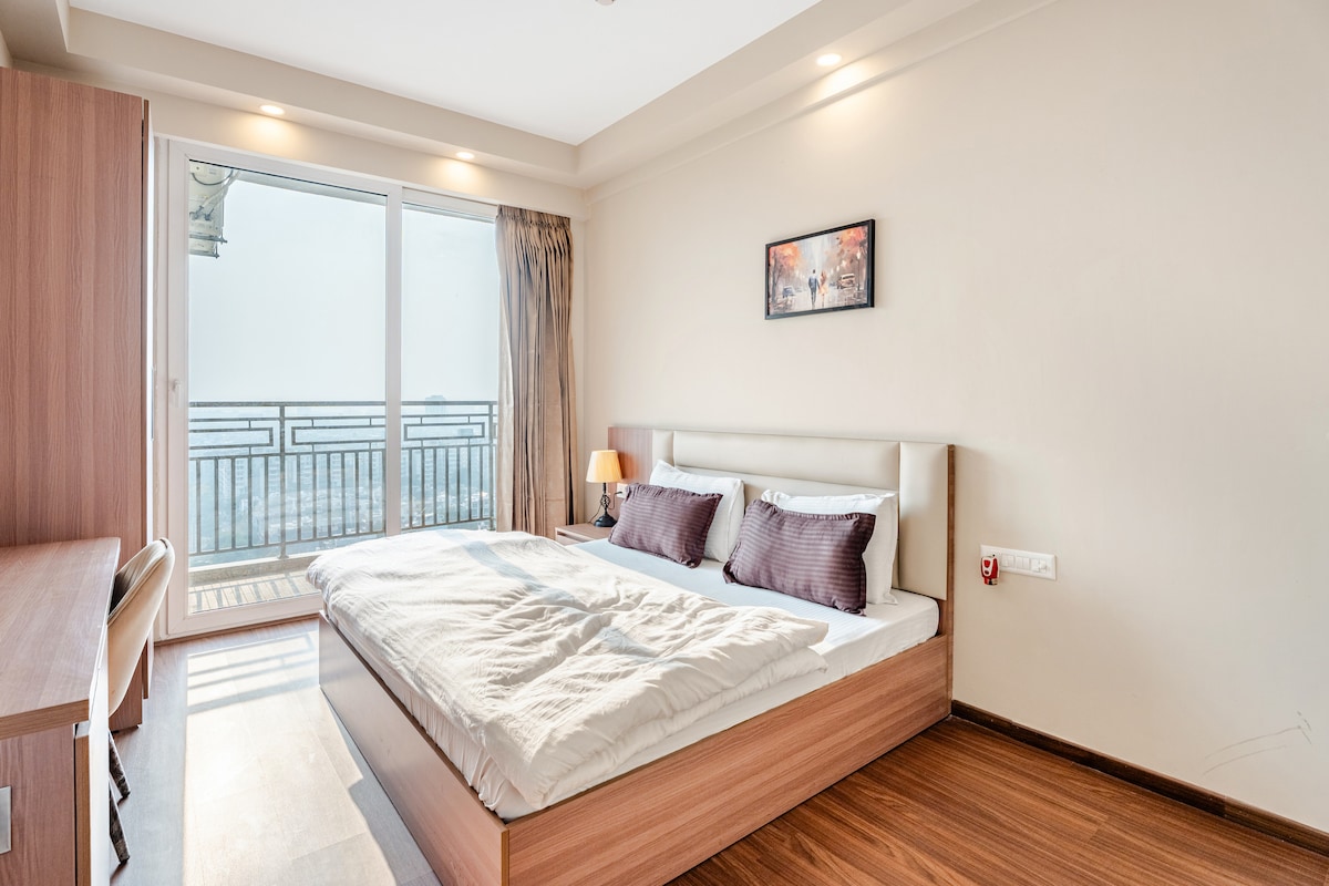 41st-Floor Ultra-Luxury Apartment | Yamuna River View • Elevated high-rise living in the tallest tower of Delhi NCR • Panoramic Yamuna river views from a premium floor • 200 Mbps high-speed Wi-Fi — ideal for remote work & long stays • Seamless food delivery (Swiggy, Zomato & more) • Easy cab access and close to key city attractions • In-complex conveniences: grocery store, salon, cafés & restaurants • Parking available outside the complex