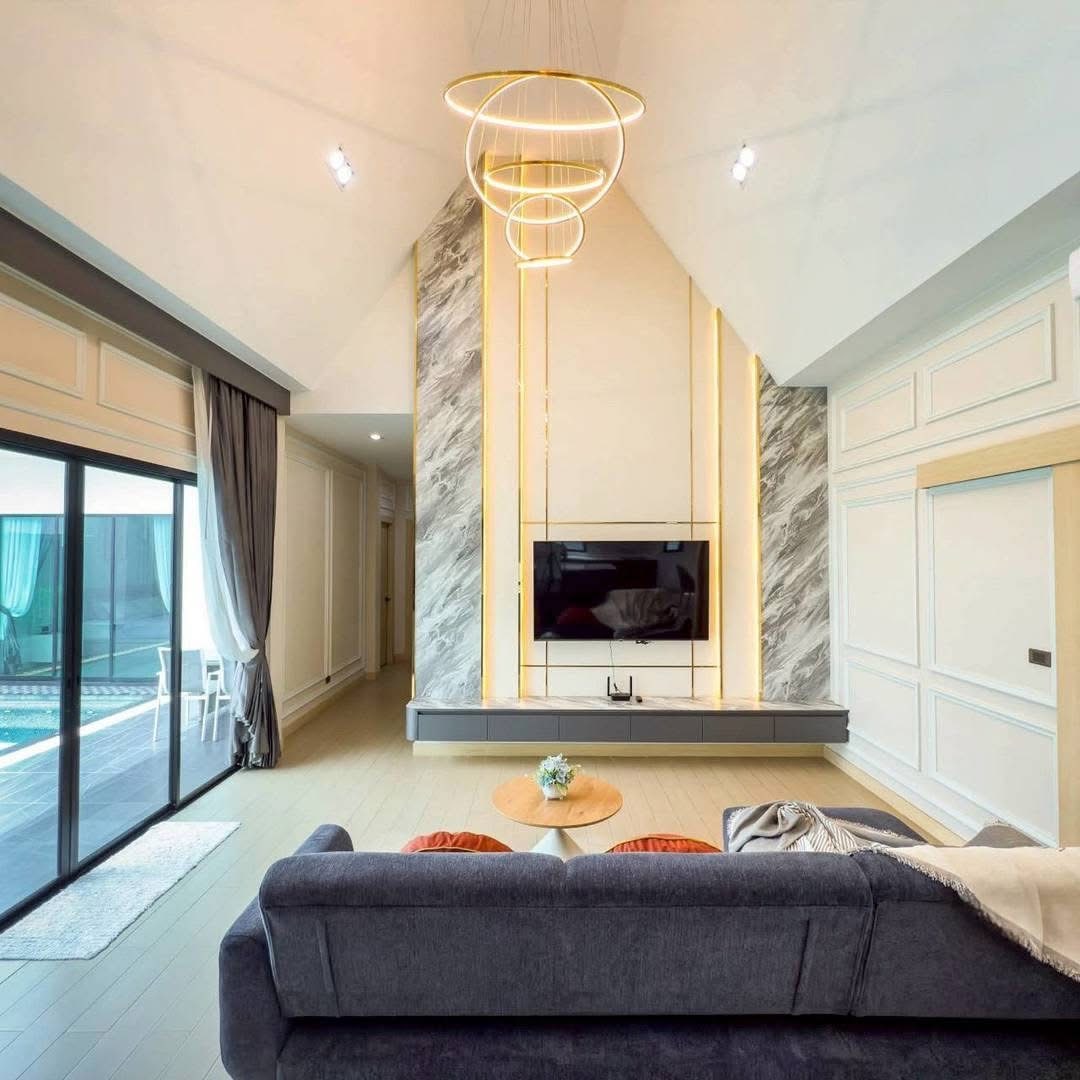 Aceasta este o vilă independentă combinată cu stil modern și thailandez, proiectată de un designer renumit, la numai 1,5 km de plaja Jomtien, cu un spațiu pe terasa cerului, precum și un spațiu de grădină cu piscină, avem un majordom privat care vă servește zilnic între orele 9:00 - 21:00.Și ai un loc de parcare dedicat pentru a-ți face vacanța plăcută.
