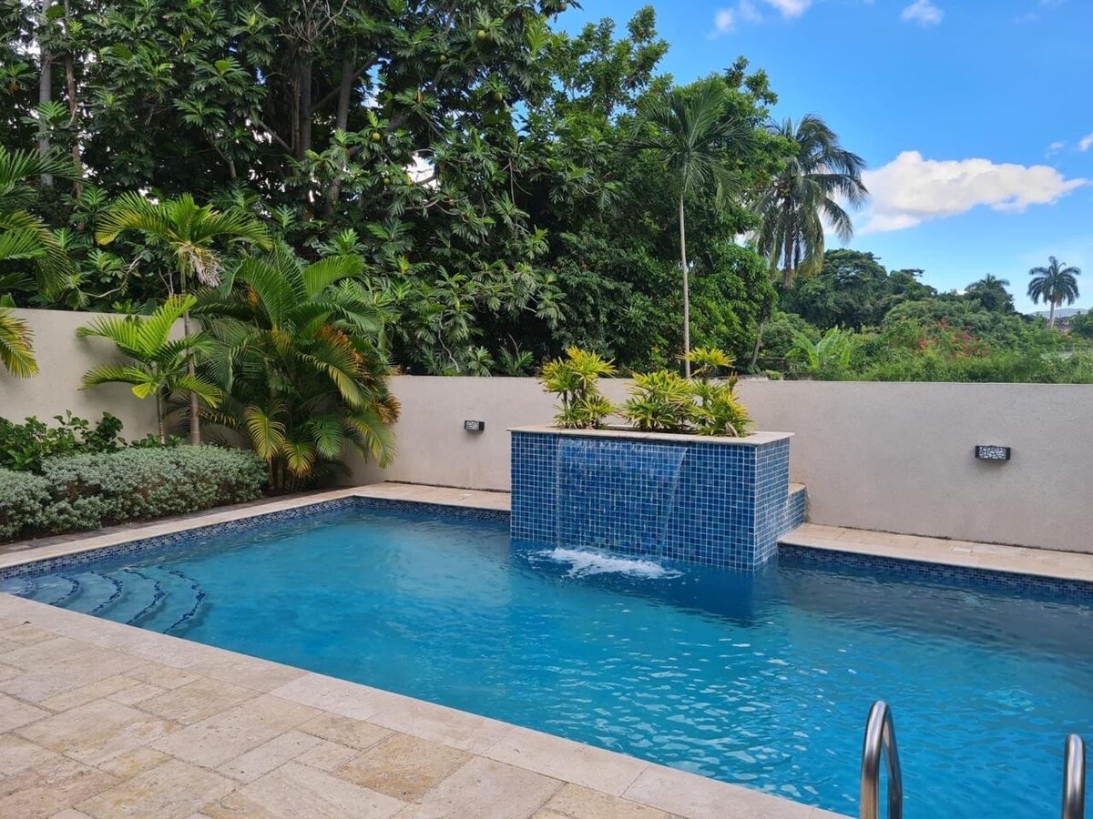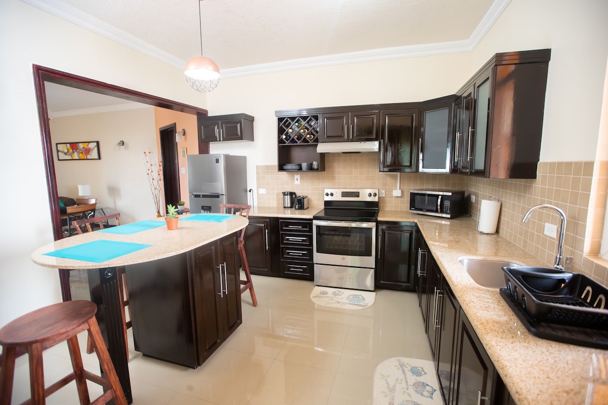 Evadează în acest refugiu elegant din Caraibe, perfect pentru până la 5 oaspeți sau un călător solo. Bucură-te de Wi-Fi de mare viteză, aer condiționat, mașină de spălat/uscător în unitate, o bucătărie completă și tot confortul unei locuințe de lux. Situat într-un cartier sigur, te afli la doar 2-10 minute de mers cu mașina de restaurante de top, cumpărături și atracții precum Muzeul Bob Marley. Se recomandă o mașină pentru acces ușor la oraș. Parcare gratuită inclusă: confort, comoditate și farmec caraibian pentru un sejur de neuitat!