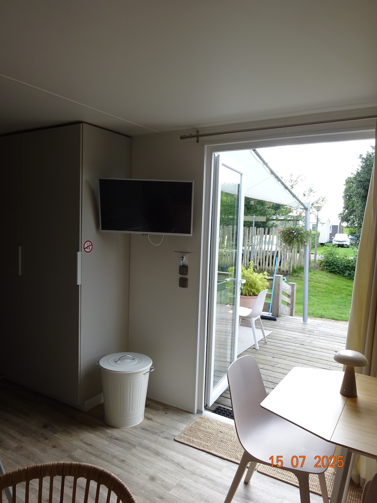 Cauți o vacanță în natură, dar fără a-ți aduce propriul cort sau rulotă? Apoi închiriază una dintre cazările noastre confortabile și complet mobilate de la Camping de Veenborg. Bucură-te de aer liber cu confortul de acasă. Cameră și bucătărie într-un singur spațiu, complet mobilat. Frigider cu congelator și cuptor combinat. Ceainic și cafetieră. Există două dormitoare; patul din dormitorul principal are dimensiunile de 1,40 x 2,00 metri (4,6 picioare x 6,6 picioare). Dormitor pentru copii: 2 paturi de o persoană, 70 x 190