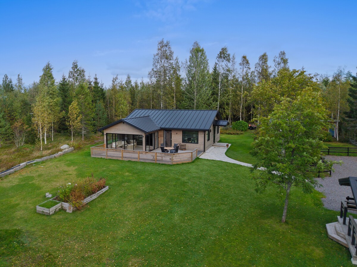 Minunată cabană de vară/iarnă la mare 38km în afara orașului Umeå. Zonă mare cu iarbă deschisă, cu spațiu din belșug pentru a te bucura de aer liber. Loc de parcare cu acoperiș pentru două mașini și garaj pentru unul în plus. Două case separate, atât cu bucătărie și băi care găzduiesc până la opt persoane. Casă principală cu dormitor matrimonial și dormitor pentru 2 copii. Pensiune cu canapea extensibilă și mansardă (2+2 persoane). Bucătărie complet utilată și șemineu în casa principală. Wi-Fi rapid în ambele spații. Saună separată cu sobă cu lemne.