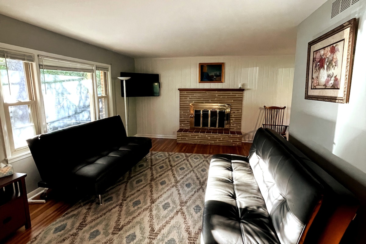 Ușor plin și ghemuit în copacii maturi din cartierul Maplewood. Această casă din cărămidă cu un singur etaj este situată central; aproape de Uptown și Downtown, campusurile ISU și IWU și la mai puțin de 10 minute de Rivian și State Farm. Recent renovat și proiectat cu o estetică modernă, oaspeții noștri vin să exploreze Bloomington/Normal, dar ne spun că sunt la fel de fericiți să petreacă timp și să se relaxeze la ferma noastră modernă. Încărcătorul pentru vehicule electrice nou instalat este disponibil în timpul șederii tale!