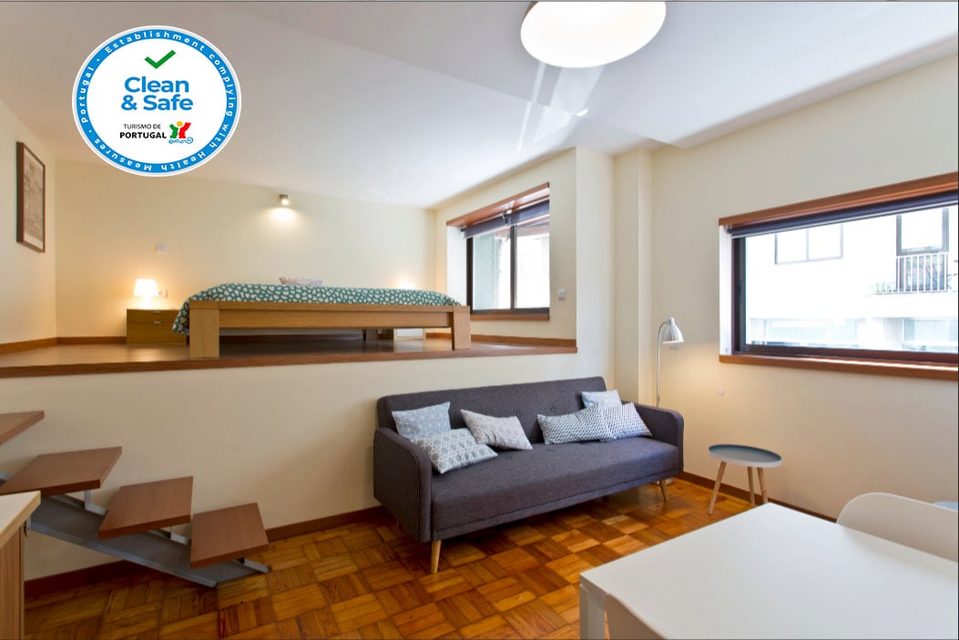 Acest apartament confortabil și rafinat cu două etaje este perfect pentru vacanța ta în Porto! La sosirea la apartament din explorarea orașului, te vei relaxa pe terasa însorită bucurându-te de un vin de Porto, pe fundalul priveliștii frumoase a cartierului „Duques” cu copacii săi înalți.
