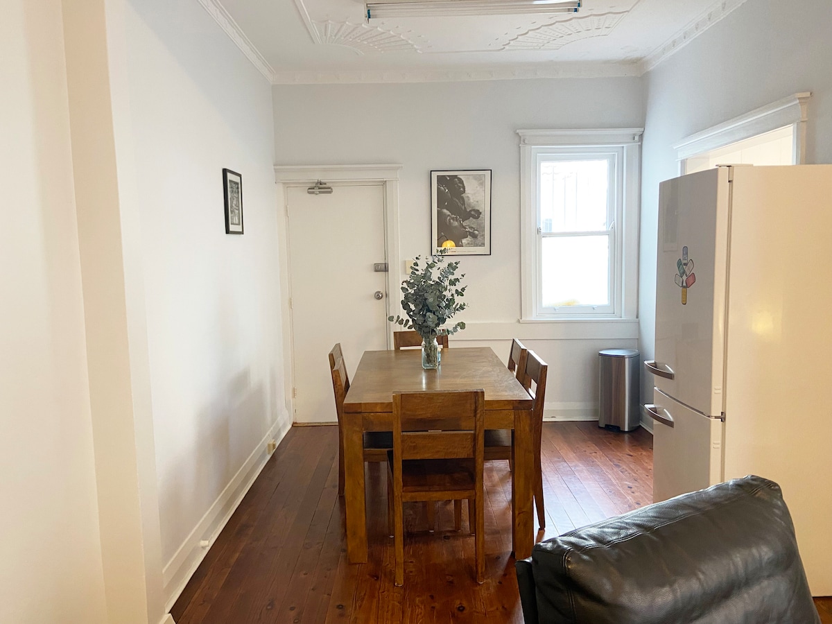 Ascuns pe o stradă liniștită, apartamentul nostru șic este un refugiu la câteva momente de cele mai bune cafenele din zonă și la 15 minute de mers pe jos de emblematica plajă Bondi Bucură-te de farmecul primitor al paradisului nostru art deco de la parter, care oferă acces la grădină. În timp ce apartamentul rămâne în mod natural răcoros, avem fani în așteptare. Există un pat matrimonial, un pat dublu în birou și o saltea pneumatică care se potrivește în living. Ședere confortabilă pentru 2 persoane, dar au avut 3 și 4. Animalele de companie bine instruite sunt binevenite