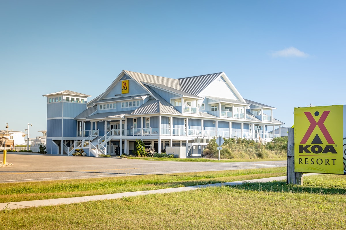 Evadează la OBX cu apartamentul nostru de vacanță tip studio situat la stațiunea Cape Hatteras/Outer Banks KOA. Explorează partea mai liniștită a OBX de lângă Rodanthe cu activități de recreere, de la pescuit, kite boarding și scufundări până la construirea unui castel de nisip pe plajă. Campingul are o piscină/cadă cu hidromasaj în stil stațiune, un loc de joacă cu tematică de corabie de pirați și pernă de sărit. Bucură-te de priveliști uluitoare asupra Pamlico Sound sau a Oceanului Atlantic de pe balconul tău în acest apartament de vacanță, la doar câțiva pași de o plajă cu nisip.
