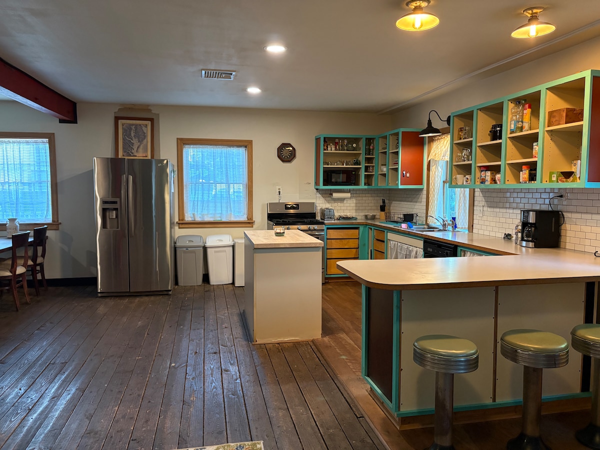 Ieși din oraș și stai aici. Fermă de cai istorică Fair Hill de 3 acri și o casă stabilă de 590 de metri pătrați! La câteva minute de trasee, crame, livezi, golf și orașe mici pitorești! Puncte forte - Recent renovat! - Fără treburi de check-out! - Chiuvetă tradițională la fermă - Ia masa în grădină - Roku TV: Netflix, Hulu - Grajduri: 6 tarabe și 2 padocuri disponibile Lumini joase - două uși interioare înguste - Bucătărie minus un cuptor convențional. Un mini-cuptor/aer, cuptor cu microunde și plită furnizate