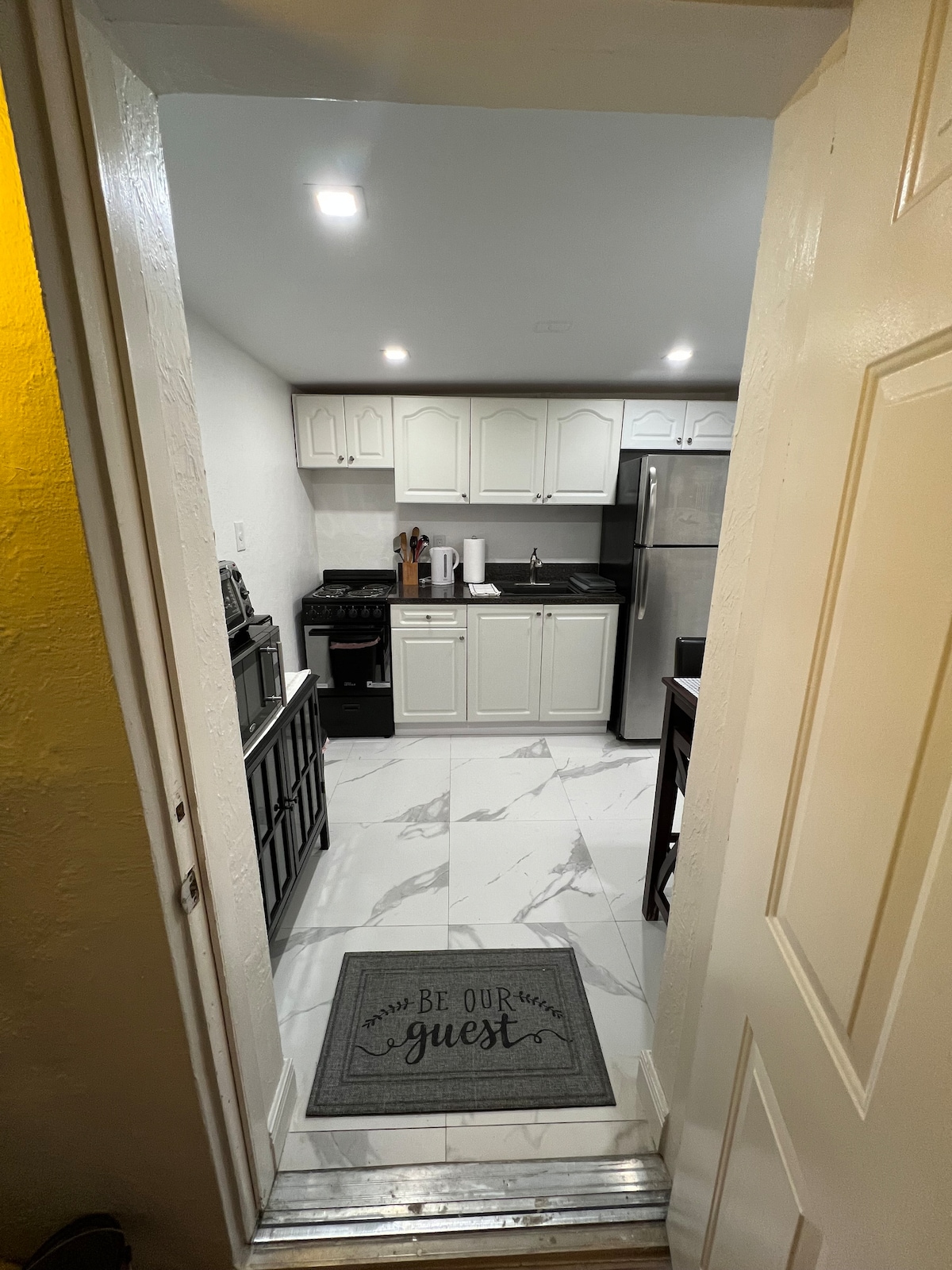 Vrem să te simți ca acasă în apartamentul nostru studio luminos și curat. Bucătăria include electrocasnice de dimensiuni normale, cu aproape tot ce ai nevoie pentru a-ți pregăti mesele preferate. Intrarea ta se află în spatele unei porți de confidențialitate din spatele locuinței. Parcare GRATUITĂ ușoară în afara străzii pentru 1 vehicul la doar câțiva pași de intrarea ta. Oaspeții fac check-in cu codul/încuietoarea fără cheie.