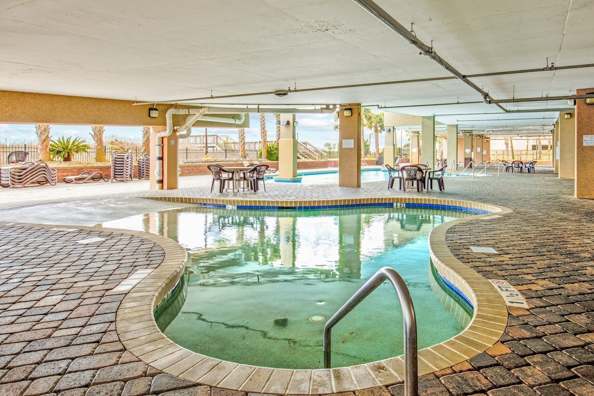 Pășește direct pe nisip! Acest apartament Sea Oats de la etajul 1 (3 paturi/2 băi) oferă priveliști spectaculoase și neobstrucționate asupra oceanului. Relaxează-te lângă piscina cu apă sărată sau pe plaja aflată la doar câțiva pași. Bucură-te de mobilier confortabil în stil de coastă, aparate moderne, mașină de spălat/uscător în unitate, Wi-Fi rapid și televizoare inteligente. Include 2 locuri de parcare și se află la o scurtă plimbare cu mașina de magazinele din Cherry Grove. Escapada de familie supremă, fără bătăi de cap – scapi de încărcarea mașinii și de lupta pentru un loc de parcare pe plajă, pentru că ești deja acolo!