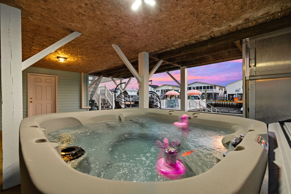 Casă pe plajă Cherry Grove Float O experiență de vacanță atemporală, care te readuce la momentele în care v-ați simțit relaxați și fericiți împreună. Casă pe stâlpi cu 4 dormitoare, complet renovată, cu atmosferă clasică de bungalou pe plajă, vedere excelentă la ocean: *Cadă cu hidromasaj *1000sf punte cu 2 etaje *100 ft de plajă - peste drum *Curte privată Putt Putt *Cafetieră Nespresso * Pahare pentru băuturi originale *Jocuri de societate *Lenjerie de pat și curățenie *Blaturi din cuarț *Distanță de mers pe jos până la debarcader, magazine, restaurante *CREDIT PENTRU MAȘINUȚĂ DE GOLF (ședere minimă)