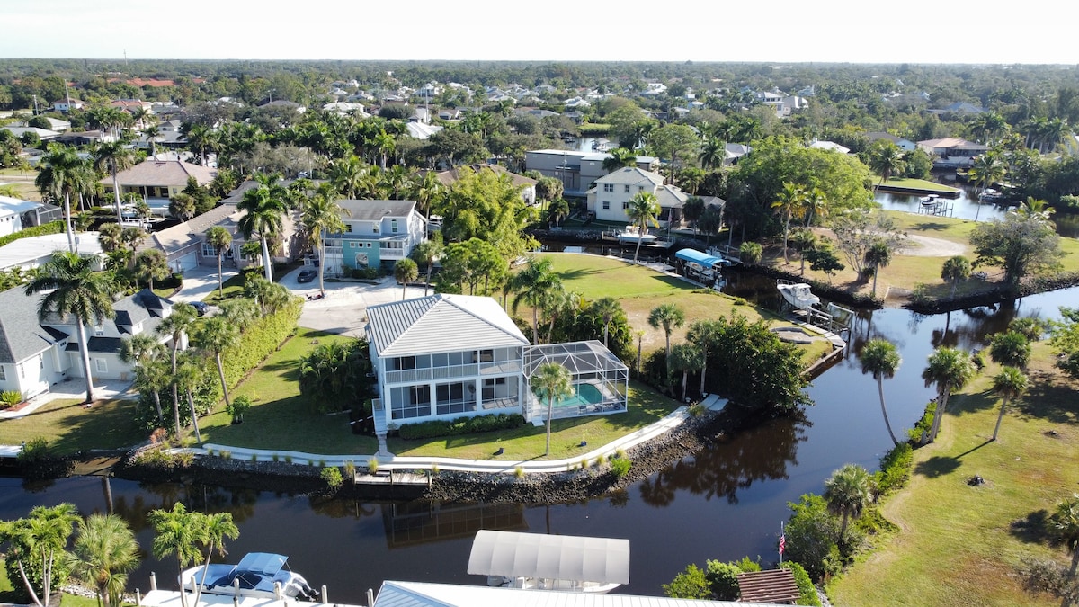 Locuință pe coastă la cel mai bun nivel, situată la 1,6 km de plaja Bonita de pe Tarpon Avenue în Bonita Springs, această vilă nou-nouță cu 3 dormitoare doarme 6 persoane. Bucură-te de băi moderne, o bucătărie complet actualizată și o curte privată împrejmuită cu vedere la canal, vatră și terasă ecranată. Explorează cu biciclete, echipamente de plajă, caiace și multe altele. Grătar pe grătarul Weber Summit sau Blackstone Flat Top. Aproape de parcul Bonita Beach, restaurante și Golf. Potrivită pentru câini și perfectă pentru navigatori, caiaciști și iubitori de natură!