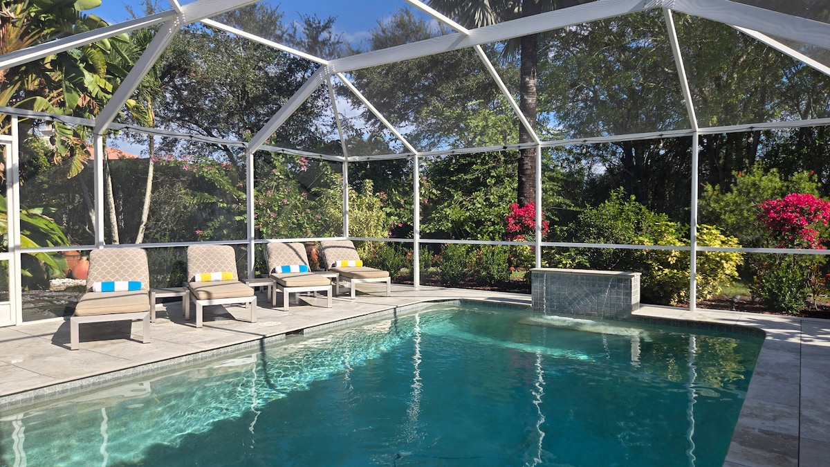 "BRAND NEW" PET FRIENDLY ! ON THE “RIVER"! READ OUR REVIEWS !!! Our past guests say it best ! EACH SUITE HAS ITS OWN BATHROOM ! Fish Poles, Kayaks, Bikes, Fire Pit, Grill, Hammock. Sparkling Designer Pool / Jacuzzi Naples-Spectacular "Vanderbilt Beach" -only 10minutes away! IN HEART OF BEAUTIFUL AND ALLURING BONITA SPRINGS- ART GALLERY, "LIVE" OUTDOOR THEATRE, UNIQUE & SCRUMPTIOUS LOCAL RESTAURANTS… ONLY 10 MINUTES FROM THE FAMED "MERCADO" IN NAPLES- SAKS, GUCCI, PRADA, AND MORE!