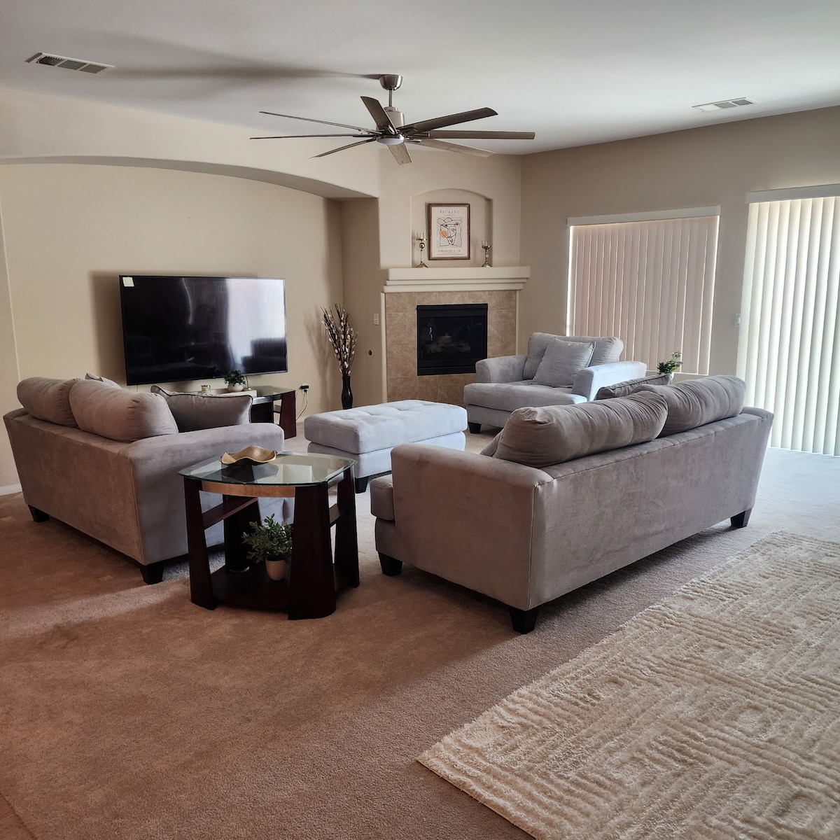 Aceasta este o casă nouă superbă, cu mobilier nou și confortabil. Bucură-te de o baie în noua piscină/spa modernă mare sau de un joc prietenos de bball pe terenul personalizat de 25’ x 20’. Relaxează-te lângă vatra de foc și bucură-te de câteva jocuri în aer liber, cum ar fi conectarea supradimensionată a patru sau a unei găuri de porumb. Când ești în interior, retrage-te în sala de jocuri pentru a juca biliard, jocuri de masă sau jocuri arcade. Relaxează-te cu un film sau o emisiune pe oricare dintre televizoarele inteligente din interior. Există o masă în aer liber, precum și vatră și șezlonguri.