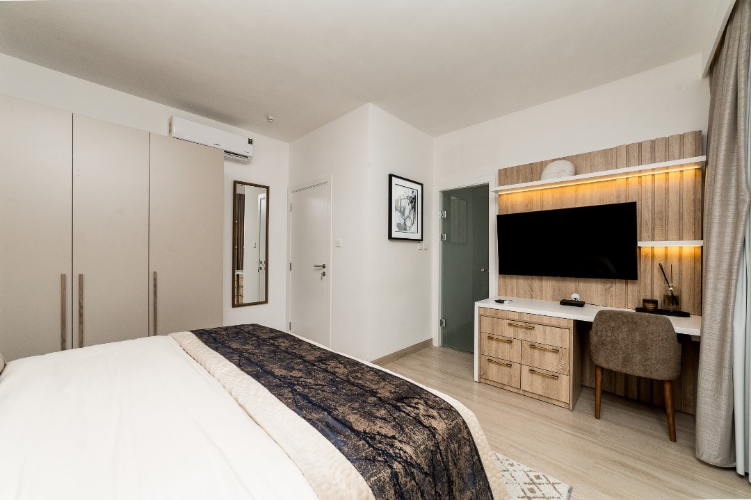 Bine ai venit în escapada ta perfectă! Acest apartament spațios cu 1 dormitor este situat ideal în inima orașului Accra, aproape de cele mai bune cafenele ale orașului, atracții culturale și viața vibrantă a orașului. Bucură-te de o bucătărie complet utilată, Wi-Fi și TV inteligent. Relaxează-te în dotările în stil stațiune, inclusiv o piscină uimitoare cu un bar de înot, o sală de gimnastică și o sală de mese pentru bibliotecă/ piscină. Perfect pentru cupluri sau persoane care călătoresc singure care caută confort și comoditate. Te așteptăm în gazdă!