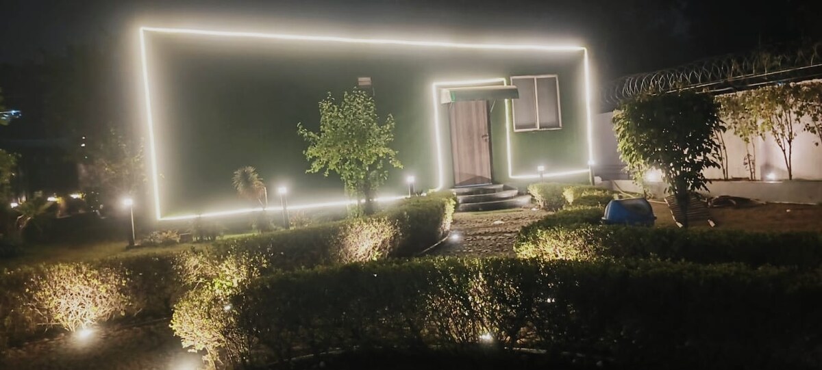 Luxury Getaway with Pool & Bonfire Enjoy a 2-bedroom retreat, each with an attached washroom for privacy and comfort. Relax in the spacious living room or take a dip in the private pool. Gather around the bonfire with outdoor seating for cozy evenings. The open area is perfect for hosting events, BBQs, or small celebrations. A stylish and serene escape, ideal for relaxation or special gatherings. Book now! Music timings -8pm to 10:30pm