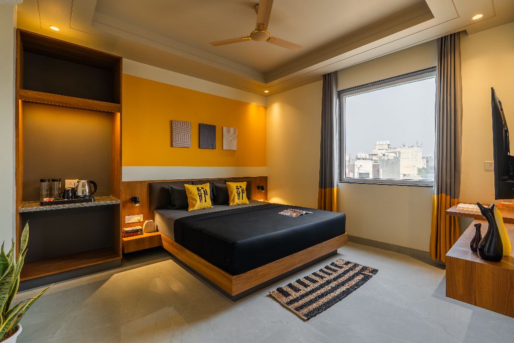 Cameră de hotel ◆confortabilă și elegantă, perfectă pentru persoanele care călătoresc singure sau pentru grupuri mici. ◆Acces facil la : Spitalul Orășenesc ✔Sir Ganga Ram – 500 de metri Spitalele ✔Apollo Spectra – 700 de metri Piața și stația de metrou ✔Karol Bagh – 1 km Aeroportul Internațional ✔Indira Gandhi – 19,9 km ◆Camera include un televizor, minifrigider și baie privată. ◆Restaurant la proprietate, cu scaune ample și aer condiționat. Zonă de recepție ◆primitoare cu canapele de pluș, TV și acces la lift.