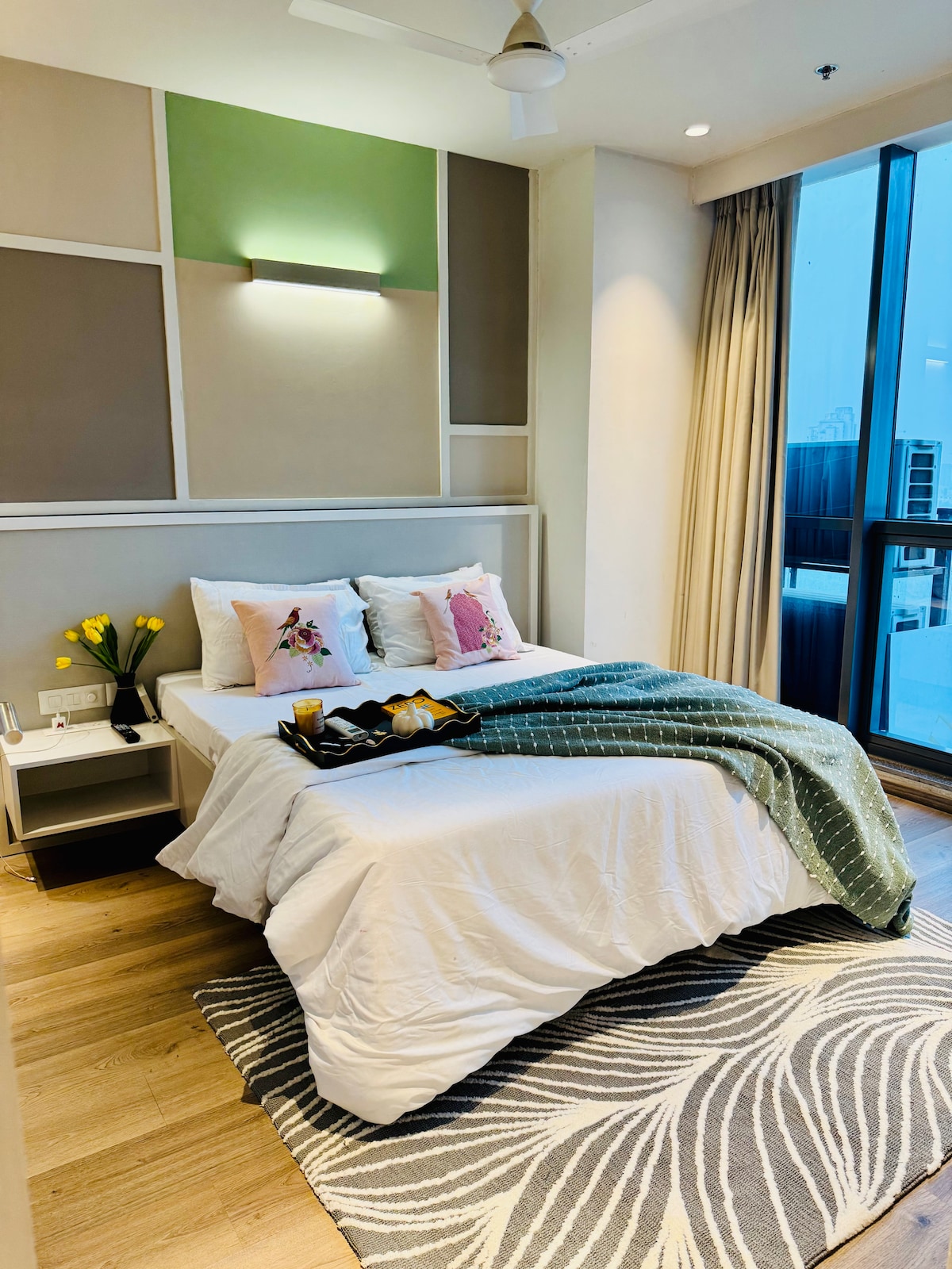 Apartament spațios și modern la WTC Plaza 106, Gurugram. Ideal pentru șederi în interes de serviciu și familii. Prețuri transparente cu taxă de servicii zero – confort și comoditate garantate. Bucură-te de un apartament modern cu Smart TV, Wi-Fi rapid, o bucătărie completă și un balcon privat. Situat în apropiere de Dwarka Expressway, pentru acces facil la aeroport, metrou și Cyberhub. Asigură o comunitate închisă, cu parcare și toate dotările esențiale pentru o ședere confortabilă.