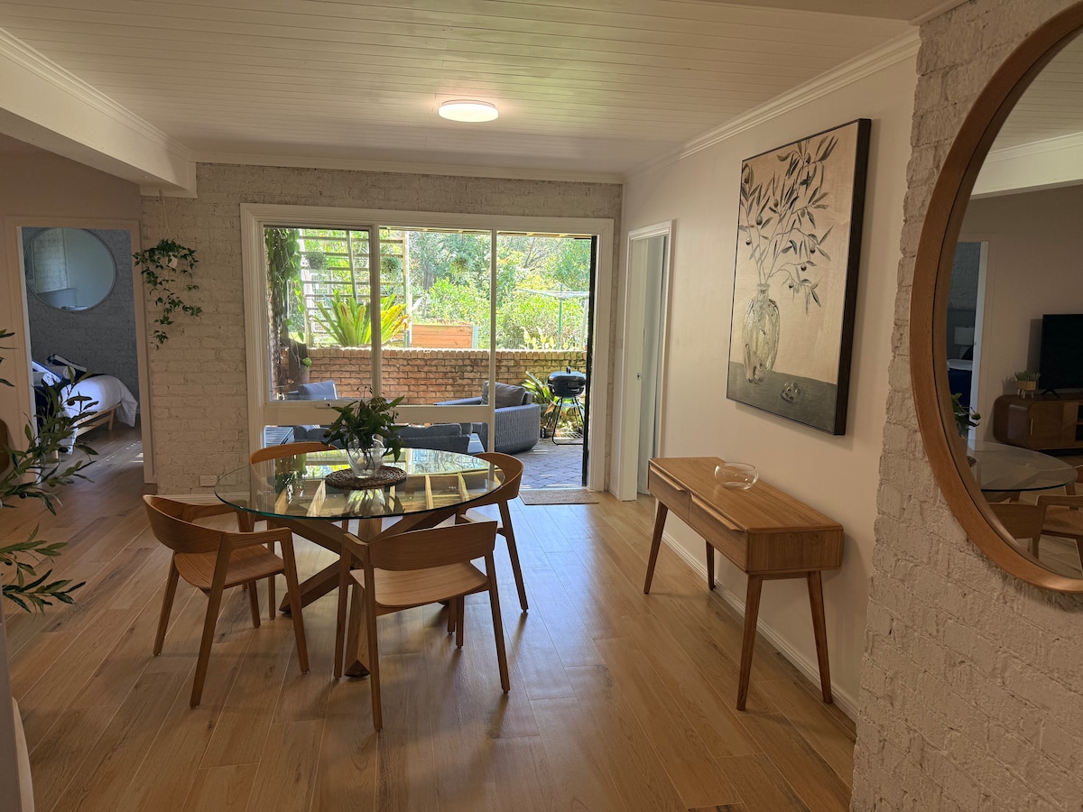 Rated one of the top 14 Airbnb's in Sydney by Urban Space. Light filled studio brimming with flowers & ferns, & a glorious stone bath for two. Opening onto extensive gardens with beach access from garden gate. All essentials: En-suite, kitchenette including microwave, toaster, coffee machine & jug. Adjacent undercover BBQ & gas ring. Organics products & fresh fruits included with breakfast. Please advise if gluten or lactose free. NB: Adult's only retreat, no children or pets.