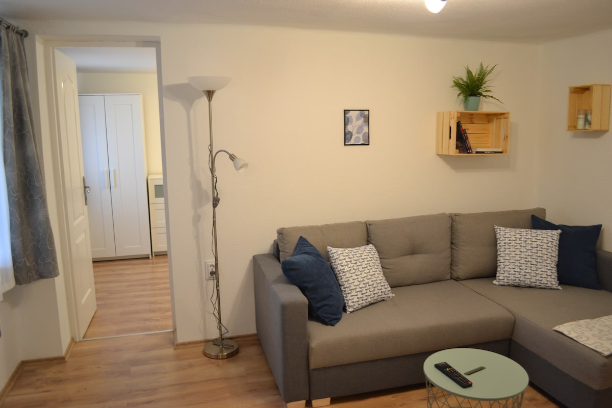 Cosy, 1-bedroom + lounge (which can be turned into a 2nd bedroom, both with a bed of 140X200 cm) apartment, with separate entrance to the main house. It is ideal for couples, a family with kids or for a group of up to 4 friends if you want a quiet environment after the noise of the city center. To arrive to the city center of Budapest takes 20-30 minutes by bus and metro or by car. In the living room there is a ceiling fan, in the bedroom there is a standing fan available.