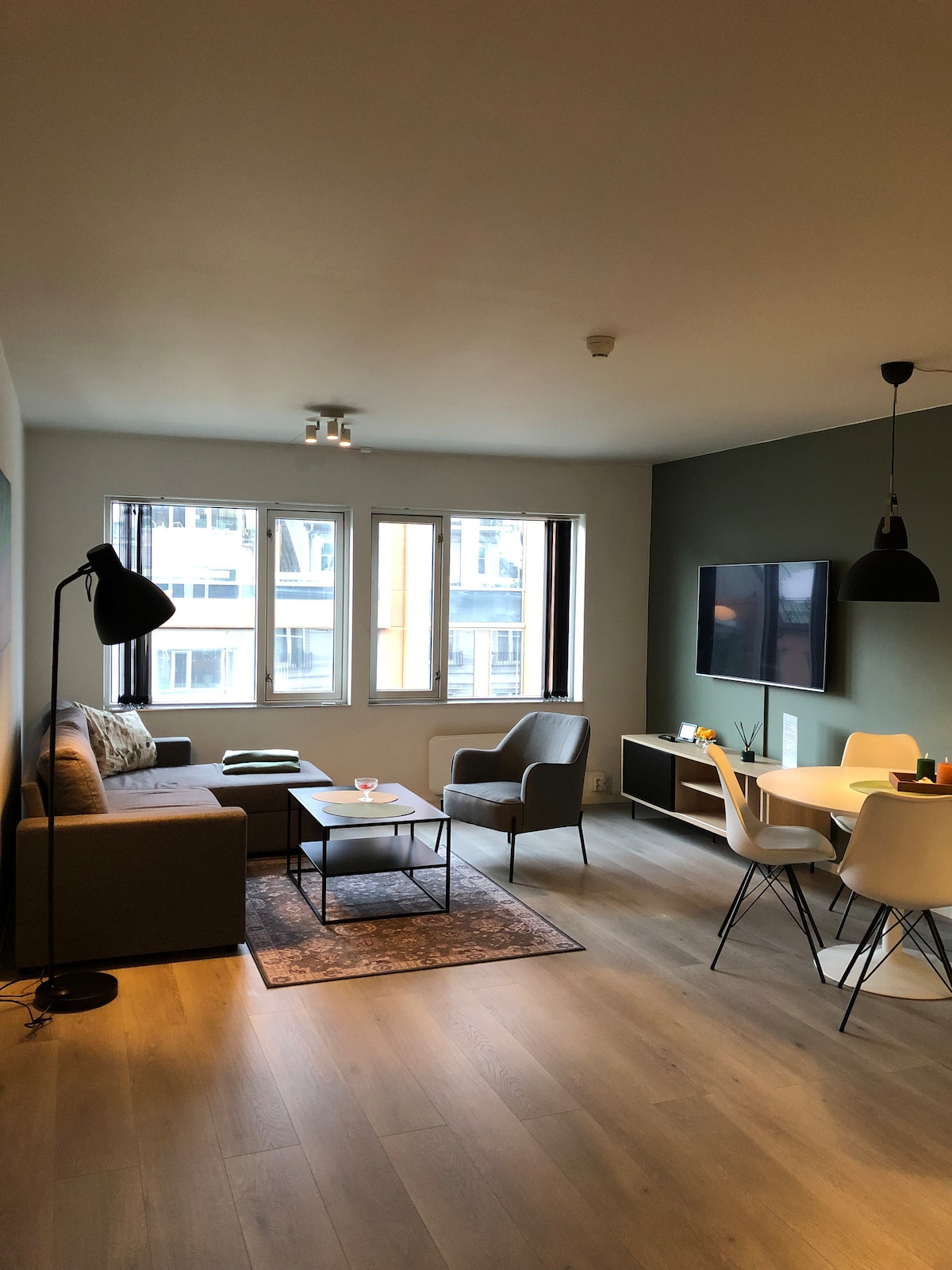 Apartament perfect, chiar în centru, la mică distanță de orice! "Wow, cum ar fi Upper East" exprima mai multe persoane. Într-o clădire emblematică și listată, construită inițial în anii '50. Vedere frumoasă. Complet mobilate și echipate optim pentru un sejur confortabil, inclusiv sejururi de lungă durată. Apartamentul are aprox. 60 mp. Apartamentul și orașul Tromsø au acum 5G, tehnologia viitorului. Acesta oferă o viteză fantastică pentru streaming video și navigarea pe web++.