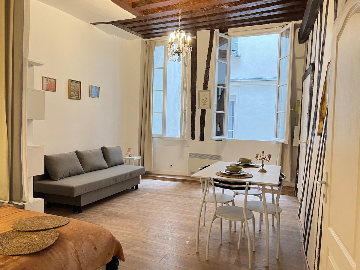 Bine ai venit în acest apartament frumos renovat de 25 mp, recent renovat în 2025, situat în centrul absolut al cartierului vibrant și istoric Le Marais. Acest spațiu elegant și contemporan are un dormitor separat, oferind un refugiu liniștit după o zi de explorare a orașului. Zona de living deschisă este perfectă pentru relaxare, cu o canapea confortabilă și o masă pentru mese acasă. Perfect pentru până la două persoane, acest apartament combină dotările moderne cu farmecul vieții pariziene.