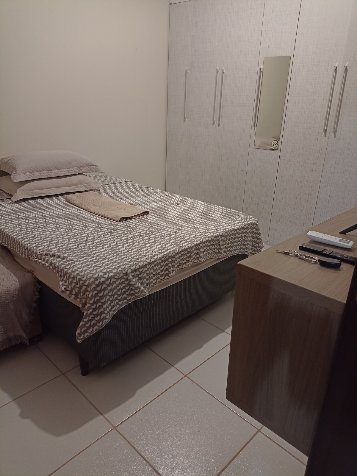 Apartament Aconchegante pentru până la 4 persoane într-un condominiu complet, cu piscină, teren multi-sportiv, saună, spațiu pentru animale de companie, chimarródromo și zonă pentru adunări sociale. Ideal pentru petrecere a timpului liber sau muncă, oferă bucătărie echipată, Smart TV, Wi-Fi, lenjerie de pat, uscător de păr, prosoape și mediu cu aer condiționat. Locație privilegiată, cu acces facil la magazine și artere principale ale orașului. Perfect pentru un cuplu, familii sau grupuri mici.