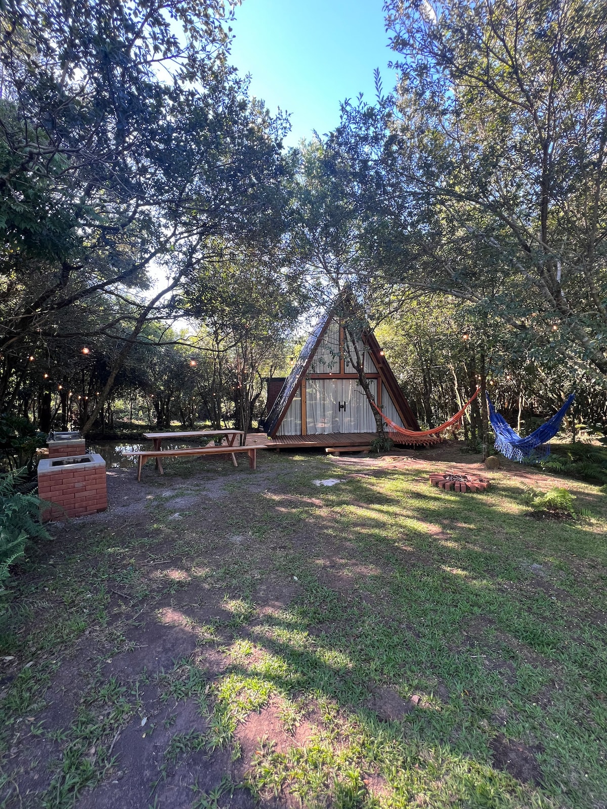 Chalé do Bosque este un refugiu al păcii în mijlocul naturii. Înconjurată de copaci și cu sunetul blând al pârâurilor de alături, cabana oferă o experiență unică de liniște și conexiune cu natura. Lângă ea, un baraj fermecător cu o terasă invită la momente de odihnă, contemplare și conversație plăcută. Conceput pentru cei care caută confort și liniște, spațiul combină confortul, simplitatea și bunăstarea, ideal pentru a încetini, a reînnoi energia și a crea amintiri speciale într-un mediu calm și primitor.