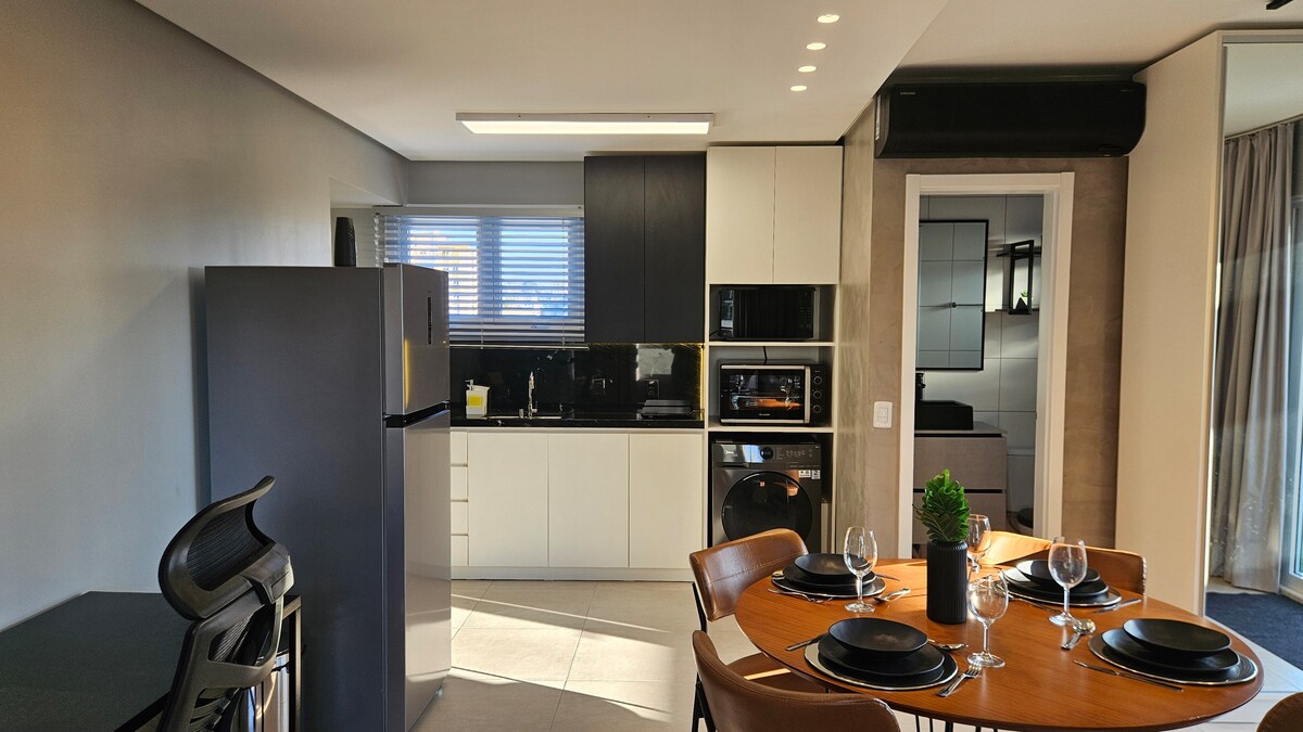 Studio nou și modern la etajul 13, conceput pentru a oferi confort și comoditate. Decor minimalist și confortabil, este ideal pentru cupluri, călătorii de afaceri sau de agrement. Poziția este o diferență: în centrul orașului Novo Hamburgo, aproape de FENAC, hipermarketul Bourbon, magazinele, gara și stația de autobuz. La doar 40 de minute de Porto Alegre și la 1 oră și 30 de minute de Gramado. Aici vei găsi tot ce îți trebuie pentru o ședere completă. Bine ai venit la bord!✨