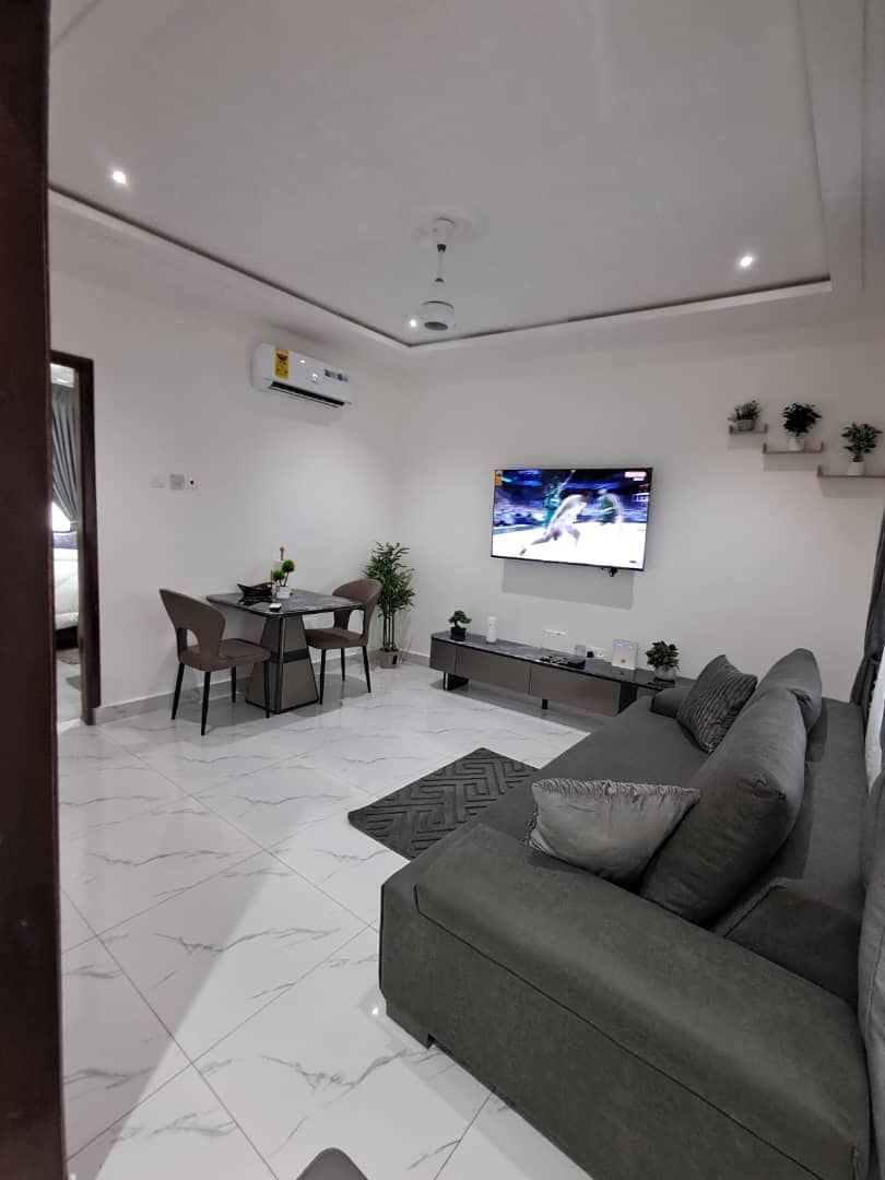 3 unități de apartamente cu 2 dormitoare, cu 3 băi, o bucătărie și facilități ultra-moderne (interfon gratuit, WIFI, camere CCTV, Dstv, generator de așteptare etc.) fiecare. Te asigurăm de o securitate ridicată, un mediu senin, cu o atmosferă liniștită, ceea ce o face unică.