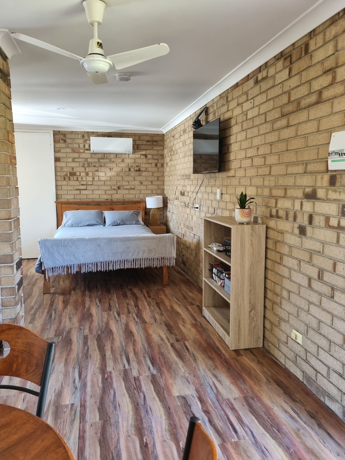 Our "Cosy Corner" (granny flat) is located at the back of our property, right in town—within easy walking distance to the city center and the foreshore. It features a queen-size bed, a kitchenette for basic cooking, and a private ensuite bathroom. The studio has its own separate entrance, though the backyard is shared with the main house.