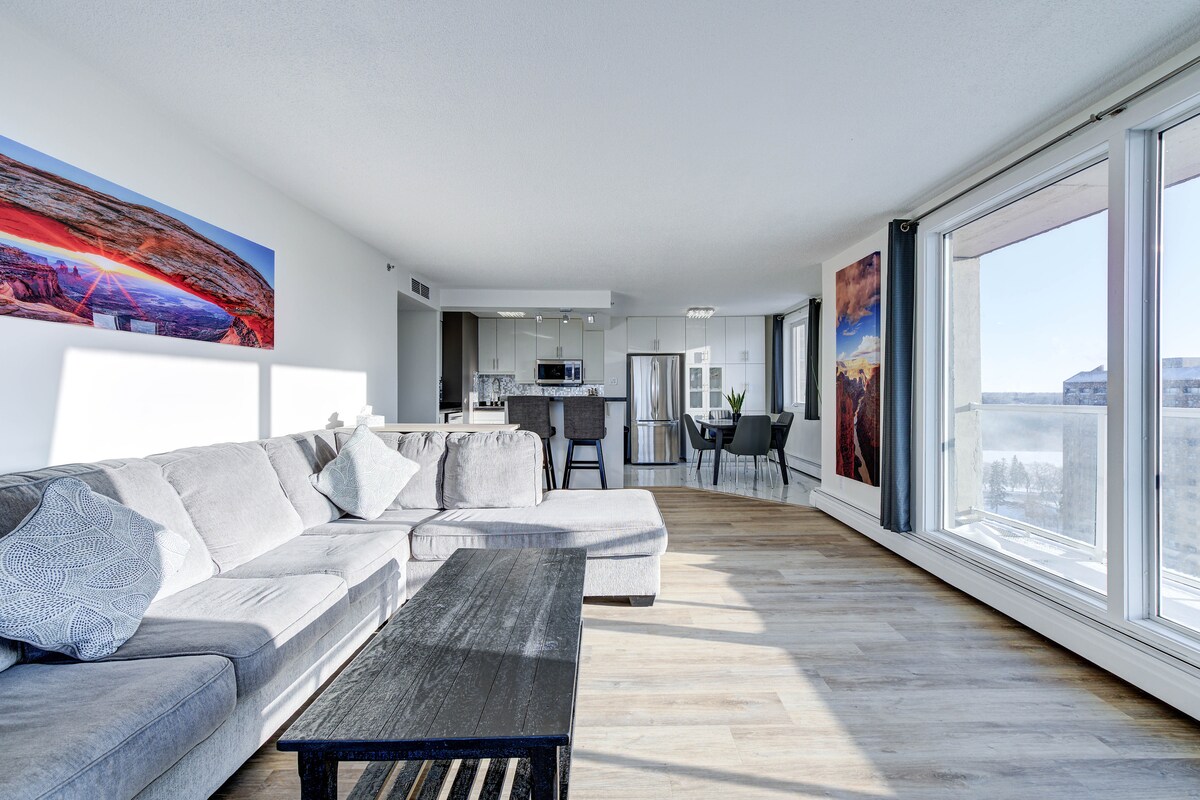 Această suită elegantă tip loft este situată în clădirea emblematică Hudson's Bay din centrul orașului Saskatoon. Această clădire a fost transformată dintr-un magazin universal în apartamente în loft de lux. Vei fi impresionat de tavanele înalte, de planul deschis al etajului și de mobilierul cald, de înaltă calitate. Nu poți depăși poziția, la doar câțiva pași de Midtown Plaza, magazine, restaurante și pub-uri. AVERTISMENT: nu facem publicitate și nu trimitem mesaje oaspeților pe alte platforme (rețele de socializare). Rezervă numai prin Airbnb sau prin site-uri de încredere.