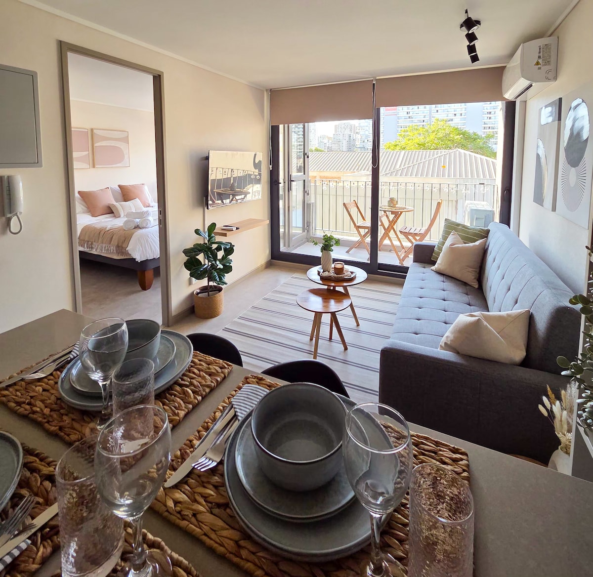 Stylish Nordic-style apartment in the heart of Ñuñoa — perfect for relaxing after exploring Santiago. Located in a safe, quiet, and well-connected neighborhood, just steps from Plaza Ñuñoa, the metro, restaurants, cafés, and shops. Close to the mall and Estadio Nacional. Features AC, washer-dryer, fully equipped kitchen, fast WiFi, and a dedicated workspace. Electronic lock for easy self check-in, 24/7 security, and private parking. Building amenities: gym, pool, and laundry.