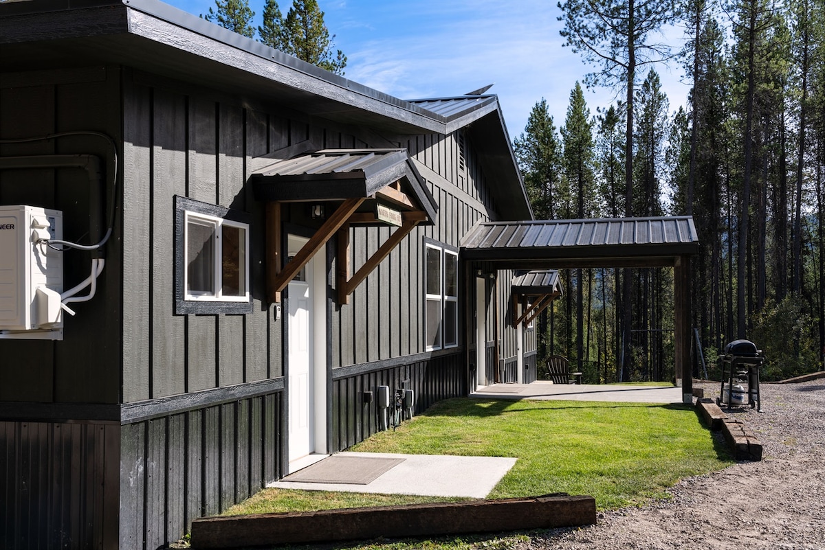 Enjoy the peace and quiet of a private, wooded retreat! Spruce Pine cabin is tucked away at the base of the Swan Mountain range and surrounded by towering pines on a property teeming with deer and wild turkeys. Located a mere 14 miles from the west entrance of Glacier National Park, you can spend your days adventuring and your nights enjoying the luxurious simplicity of a movie in front of the fire, dinner on the patio and stargazing at the clear night sky.