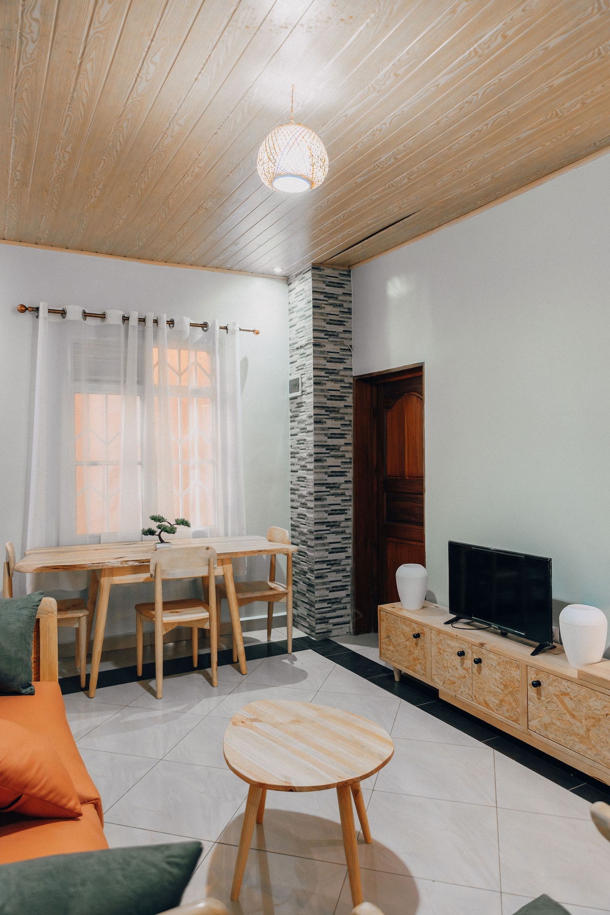 Casă mică privată minunată, confortabilă, cu un living, un pat dublu la mezanin, o baie, o toaletă separată, un frigider (bucătăria face parte din casa principală la 30 de metri, cu acces non-stop). Grădină privată mare și minunată, situată într-un mediu verde luxuriant, cu o terasă relaxantă. Această casă este foarte aproape de centrul orașului, la câțiva pași sau de 2„până la 4” cu taxiul cu motocicleta (hoteluri principale, bancă, supermarket etc.). Este aproape de casa președintelui, o zonă foarte liniștită și sigură.