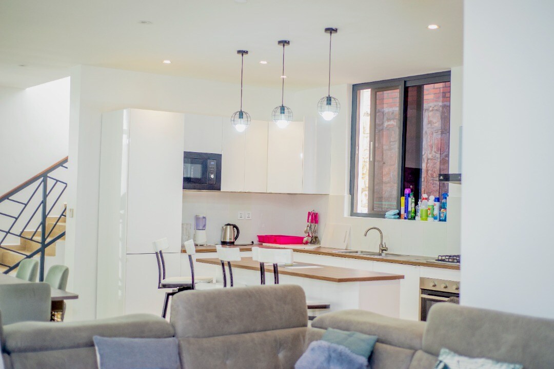 Bine ai venit la Kona Gana, un apartament modern, nou construit, situat în inima orașului Kigali. Un apartament duplex spațios cu 2 paturi și 2 băi, perfect pentru cupluri, un grup de prieteni, persoane care călătoresc în interes de afaceri sau o familie cu copii. Apartamentul este situat în cartierul sigur, central Kacyiru și este conceput pentru a oferi confort și liniște sufletească călătorilor — potrivit cu electrocasnice moderne, internet de mare viteză, mașină de spălat și uscător automat de rufe, prize universale și saltele confortabile pentru un somn bun.