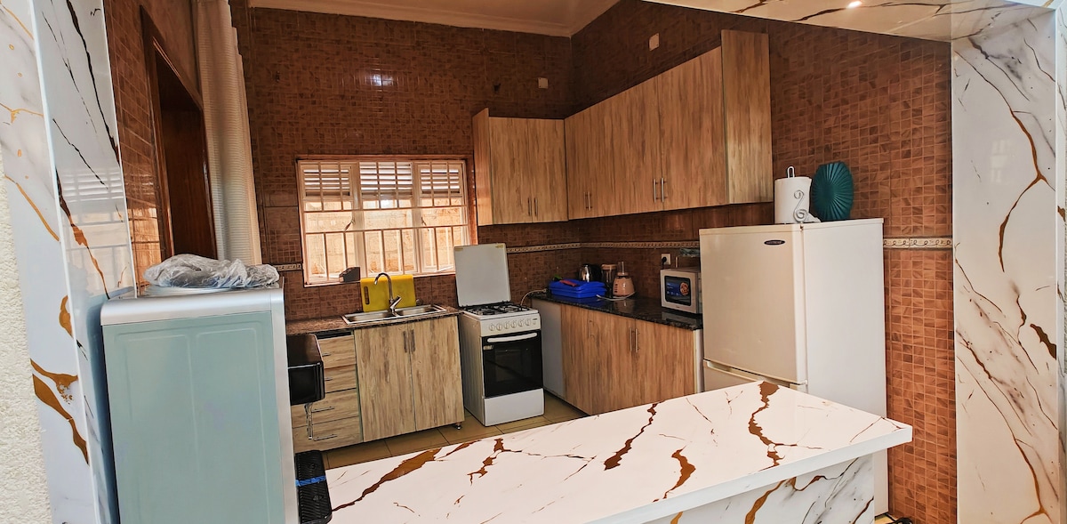 Descoperă confortul și farmecul modern în această casă elegantă cu două dormitoare, ascunsă în Gisozi. Proiectat cu atenție, cu finisaje șic, mobilier confortabil și tot ce îți trebuie pentru o ședere relaxată - de la lenjerie de pat proaspătă și prosoape moi până la o bucătărie completă și Wi-Fi rapid. Situat într-un cartier local din Kigali, oferă o valoare excelentă pentru oaspeții care doresc o experiență unică și o parte mai autentică din viața din Kigali, bucurându-se în același timp de tot confortul de acasă.