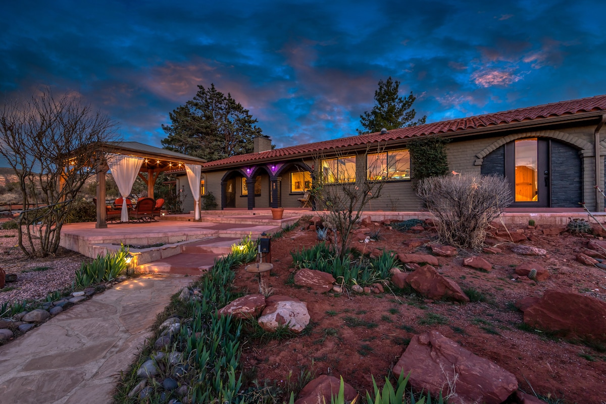Priveliști uluitoare ale stâncii roșii și panorame pitorești în Oak Creek Canyon, la doar 10 minute de Uptown Sedona și Slide Rock! Pereții de sticlă și interiorul superb actualizat creează o vacanță foarte specială, cu multă lumină naturală și intimitate. Bucură-te de yoga pe terasă, de privitul stelelor, de răsăritul soarelui în timp ce savurezi cafeaua și apusul soarelui în scaunele noastre cu gravitație zero. Adormi sub luminatorul planetariului dormitorului principal sau fă o baie înmuiată în timp ce privești stelele prin luminatorul din baie.