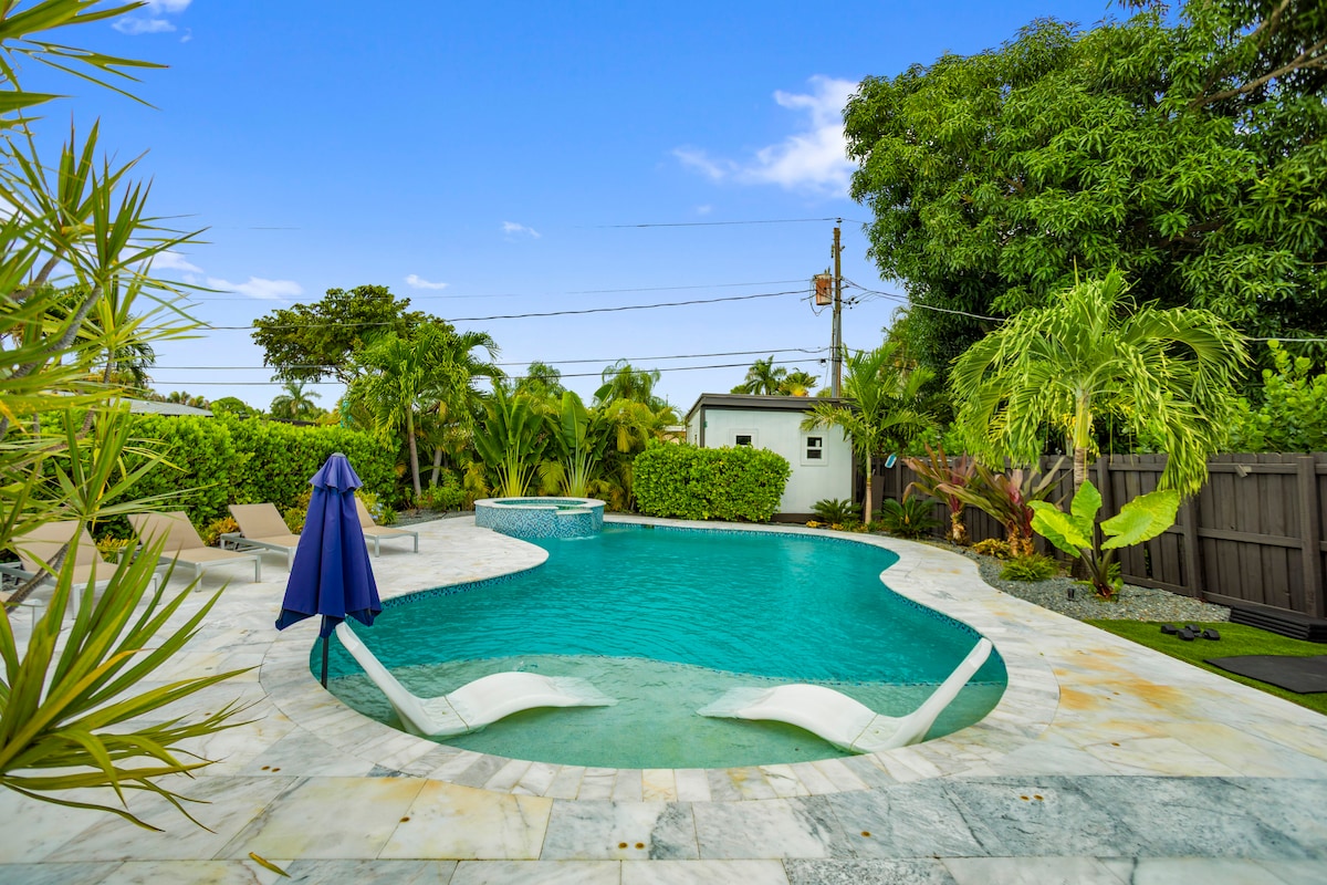 Welcome to CASA DÉJÀ VU — a curated luxury retreat designed for travelers who value beauty, privacy, and unforgettable stays in Fort Lauderdale. ✔️ 8 min to the beach | 10 min to Las Olas ✔️ Heated saltwater pool + outdoor hot tub ✔️ Garden with gazebo, BBQ & loungers ✔️ 2 beds (King + Queen), fast Wi-Fi ✔️ Fully equipped kitchen + Smart TVs ✔️ Free bikes & beach gear ✔️ Quiet and safe neighborhood ✔️ Free parking + 24/7 hosts