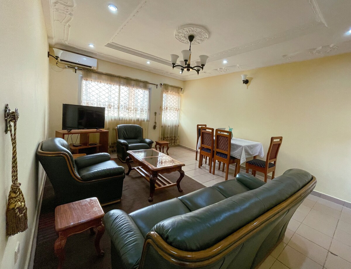 Bine ai venit în apartamentul nostru cu 2 dormitoare de la Podul Emana de la ieșirea de vest din Yaoundé. Apartamentul are o bucătărie complet utilată, 2 dormitoare spațioase cu spațiu de depozitare și 2 băi, ceea ce îl face o alegere ideală pentru călătorii care doresc să exploreze orașul singur sau cu familiile lor. Acesta este situat convenabil la doar 3 minute de mers pe jos de un drum central, oferind acces ușor la mijloacele de transport public. Bucură-te de vibrația vieții urbane într-un mediu liniștit. Rezervă acum pentru o experiență memorabilă.