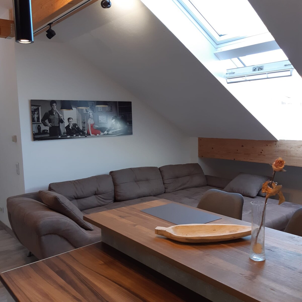 Bine ai venit în acest apartament modern la mansardă, la peste 80 m². Apartamentul complet echipat oferă confort contemporan într-o locație liniștită, dar centrală. Planul etajului deschis oferă apartamentului generozitate și, cu stilul contemporan, o ambianță primitoare.